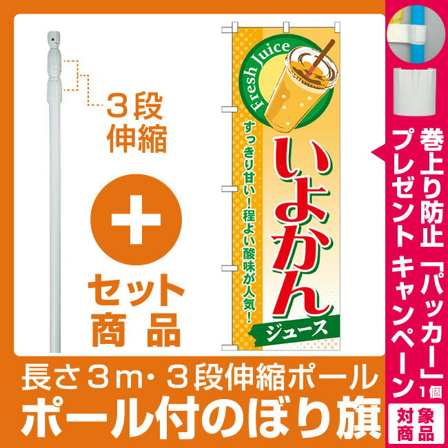 【セット商品】3m・3段伸縮のぼりポール(竿)付 のぼり旗 いよかん (ジュース) (SNB-302)(洋菓子・スイーツ・アイス)