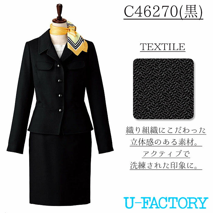 スカート C36270 タイト ヘリンボーン 黒 ブラック 制服 ユニフォーム 接客 案内 U-FACTORY/ユーファクトリー