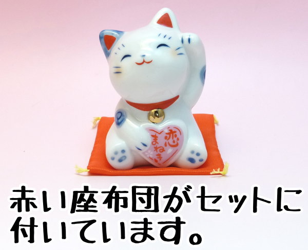 招き猫 置物 まねきねこ 開店祝い ピンクのハートが恋愛運を招く 恋招き猫(7791)【あす楽対応】【ラッピング無料】【まねき猫 赤座布団 座布団 バレンタイン ギフト プレゼント 風水 風水グッズ ホワイトデー お返し】
