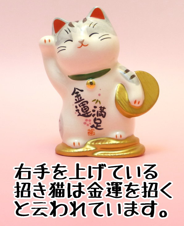 開催中のポイントアップキャンペーン 〇商品概要:左手に小判を持って、右手を上げた灰とら猫があなたに金運を招きます!金運満足招き猫 【あす楽】【まねきねこ】【招き猫 置物】【招き猫 販売】【招きねこ】【開店祝い】【ザブトン】【開運グッズ】【金運上昇】【とら】【トラ】 開店祝いのプレゼントにもオススメです☆