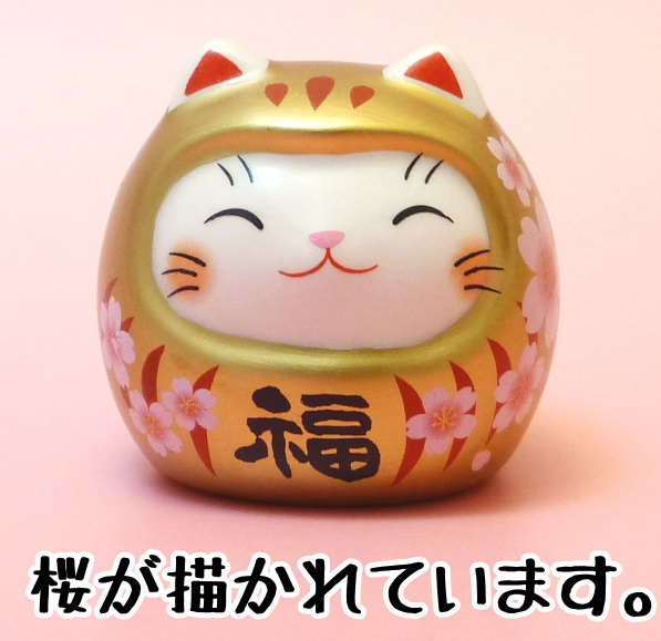 招き猫 置物 まねきねこ 開店祝い 彩絵開運ねこだるま(桜金福)【あす楽対応】【当店オススメ】【まねき猫 専門店 みけ ミケ 車載 風水 玄関 風水 グッズ 猫 玄関 ok】